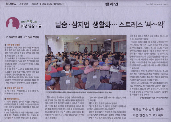 º» ¿ì°î¼±¿øÀÇ ¸ðµç ¸í»óÇÁ·Î±×·¥¿¡¼´Â ¸í»óÀ» À§ÇÑ Áغñ ´Ü°è·Î ³¯¼ûÈ£ÈíÀ» ¹Ýº¹ÇÑ´Ù. ±×¸®°í »ïÁö¹ýÀ» ÅëÇØ ¼Õ³¡¿¡¼ ÅåÅå ¶Ù´Â ¸Æ¹ÚÀÇ ¿òÁ÷ÀÓÀ» °üÁ¶ÇÏ¸ç ½±°Ô °í¿ä¸¦ üµæÇÒ ¼ö ÀÖ´Ù. û¼Ò³â ¸í»ó±³À°ÀÌ ³¡³ ÈÄ ¡°³¯¼ûÈ£ÈíÀ» ÇÏ´Ï ¸¶À½µµ Æí¾ÈÇØÁö°í »ïÁö¹ýÀ» ÅëÇØ ÁýÁß·ÂÀÌ »ý°å´Ù¡±´Â ÇлýµéÀÇ °æÇè´ãÀ» ¸¹ÀÌ µè´Â´Ù. ´©±¸µçÁö µû¶ó ÇØ º¸¸é ³¯¼û¸¸ Àß ½¬¾îµµ ¸¶À½ÀÌ °í¿äÇØÁö´Â ³î¶ó¿î üÇèÀ» ÇÏ°Ô µÉ °ÍÀÌ´Ù.